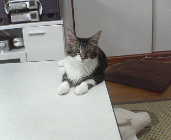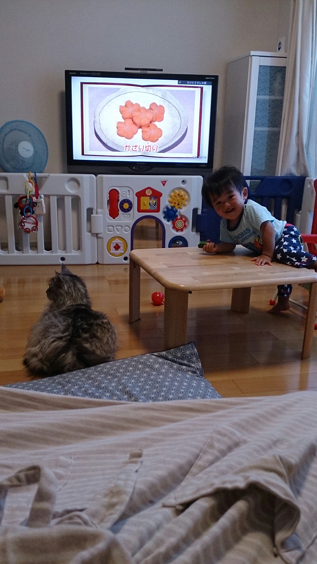 上の娘は猫大好きなんですが、息子はまだまだ怖いみたいで、テーブル越しなら。。とか、ママにしがみつきながらなら。。とか、なんしか条件つきで猫にはちょっかいをだしてる段階です(笑)