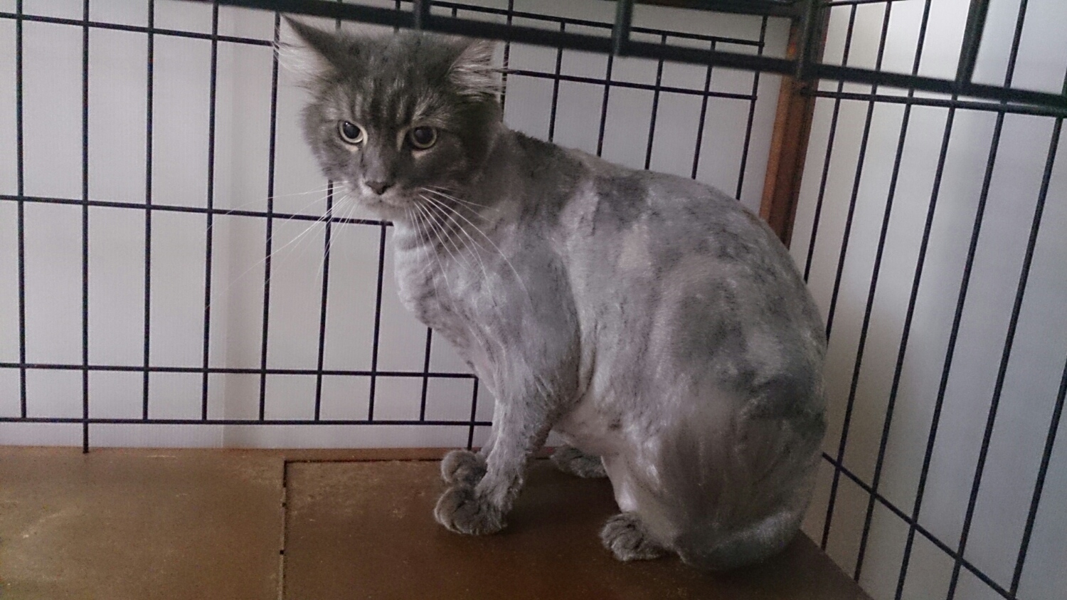 引っ越し以来、少し怖がりさんになってしまったハッキネンがグルーミングができずなや体の毛玉がすごくて、だんだん巨大化しており、ぎりぎりまだ暑い時期に健康診断ついでに病院でバリカンによりライオンさんになることに。。