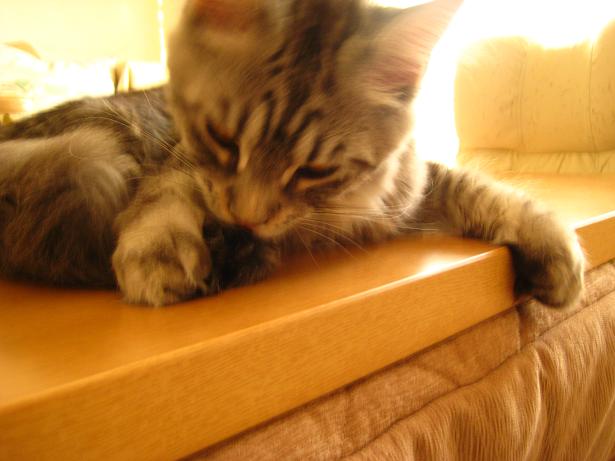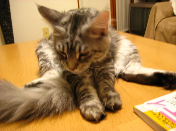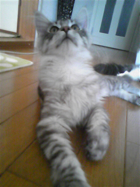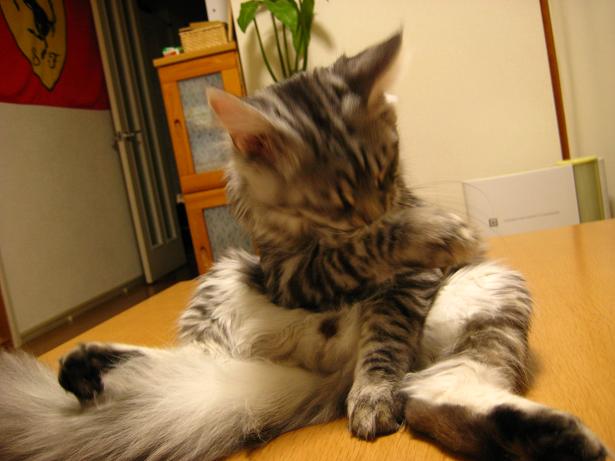 メインクーンなのにスコ座り(いわゆるパンダ座り)