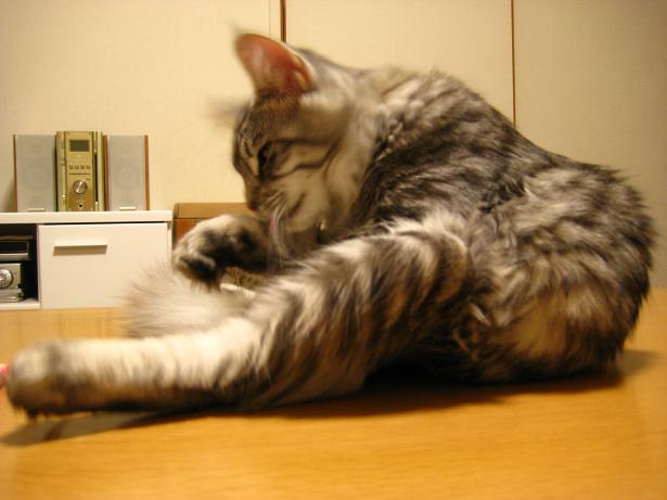 気持ちよくグルーミングしてるいつもの風景ですが、