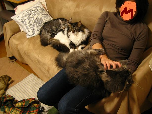 たぶん、猫たちとMittyは半端ない寒がりで、毛皮と服やタイツでそれぞれ
