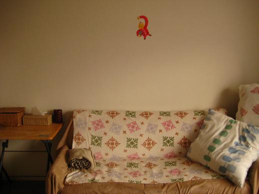 模様替えっても、安売りのフリースをソファーカバーにしただけなんです(^^;)